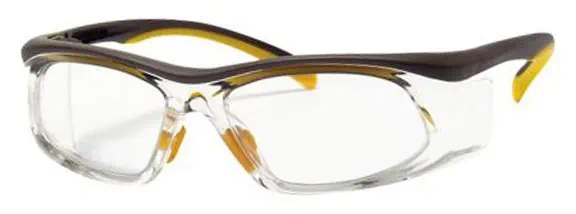 The Titmus SW06E are prescription safety glasses made of high-quality Trogamid nylon, with no metal content. These safety glasses with 17 degree face-form wrap feature a removable dust dam for enhanced protection against airborne particles. Plus, they have rubberized adjustable nose pads for a secure fit and their integral extended shield design offers additional lateral protection. The SW06E model is the extended version of the SW06, meaning they feature longer side shields. They are available in two colors: brown with yellow accents, and black with orange accents.